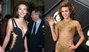 Итальянский бренд нарядил Энн Хэтэуэй в платье, в котором классические мотивы Chanel (жемчуг, камелии и твид) сочетались с застежками в виде Медузы от Versace. Гальяно использовал свою старую работу при создании нового платья для Сайрус на церемонии вручения премии «Грэмми».