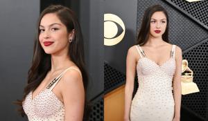 Оливия Родриго в воскресенье посетила церемонию вручения премии «Грэмми» в Лос-Анджелесе в винтажном стиле от Versace. Певица “Sour” была одета в белое платье из весенней коллекции итальянского бренда 1995 года, которое Линда Евангелиста первоначально надевала на подиум. Платье Родриго длиной до пола было украшено градиентным узором из красных бусин, прозрачных пайеток и ремешков, украшенных металлическими кольцами.