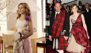 В 1997 году на церемонии вручения премии VH1 Vogue Fashion Awards Паркер отдала дань уважения Кэрри Брэдшоу, надев культовое “обнаженное платье” героини — бледно-бежевую комбинацию DKNY. Паркер, как известно, щеголяла в этом коротеньком платьице в первом сезоне “Секса в большом городе” — она также была изображена в нем на рекламе автобуса, которую можно было увидеть во вступительном эпизоде сериала. Чтобы получить свой первый «Золотой глобус» за лучшую женскую роль в телесериале (комедии или мюзикле), Паркер блистала в розовом платье с глубоким вырезом, украшенном рядами страз.