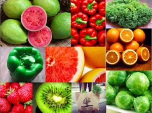 Шиповник засушенный, барбарис, шиповник свежий, черная смородина, петрушка, облепиха, перец, брюссельская капуста, укроп, черемша, боярышник, брокколи, капуста цветная, киви, рябина садовая, апельсин, грейпфрут, земляника, хрен (корень), капуста бело-кочанная, лимон, мандарин, ананас, щавель, картофель зеленый лук, горошек зеленый, томаты, редька, , яблоки отечественные, чеснок, огурцы, морковь, свекла.