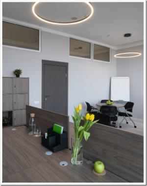 Для того чтобы показать, насколько офис просторный, важно выбирать ракурс из конца помещения, который будет направлен в более светлую сторону.